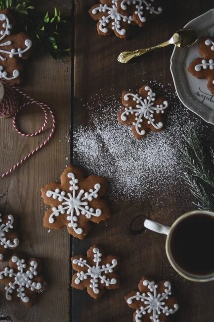 So, I looked it up. Gingerbread cookies and gingersnaps are pretty similar. When I set out on this cookie recipe, I really wanted to make gingersnaps so I could have a spicy crisp to dip in my tea, but I wanted to be able to play with some festive shapes too. Basically, gingersnaps are made with molasses instead of the gingerbread’s sugar, and they’re baked longer to give them more of a snappy crispness. But, who said I follow rules all that well? No one said that. What I’m calling gingerbread is made with molasses, and have a pretty respectable snap to them. I decided these are gingerbread because I found more often than not, gingerbread cookies are cut into shapes while gingersnaps generally stay round with a little sweetness sprinkled on top and some yummy cracks throughout. Well, I want to make a more classic looking gingersnap in the future, so I’m officially declaring these gingerbread to save the gingersnap recipe for later. Capisce?