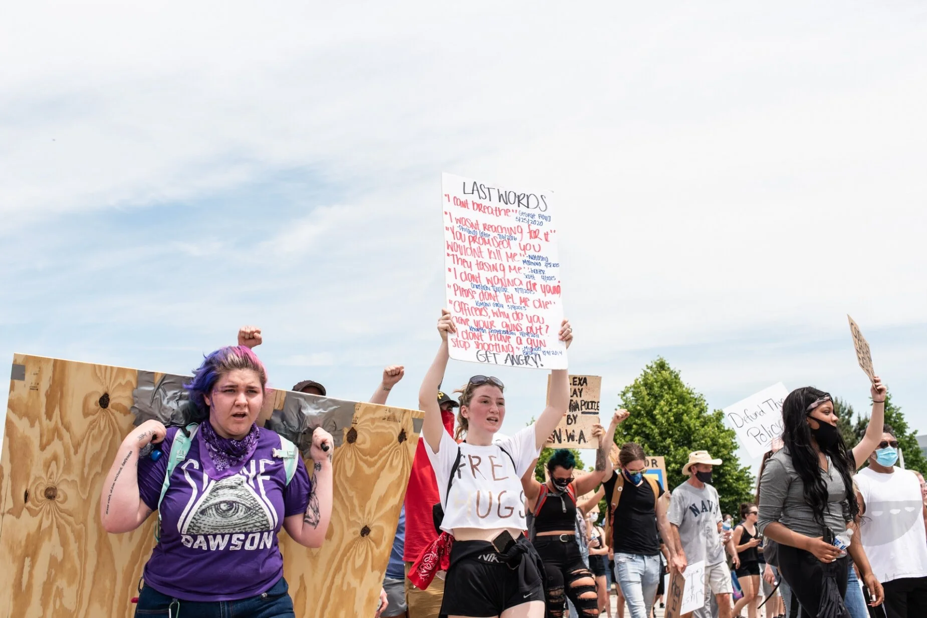 I saw all kind of people. People of all kinds of different backgrounds with different histories. "Protest" sounds scary. I imagine a lot of unruly individuals, screaming at you. But these were people filled with a desperation. A need to love and be loved and to protect their families and brothers and sisters. There was more water available than could even be drunk. There were masks for those who still hadn't been able to get any. Workers in businesses nearby came out to offer water and support.